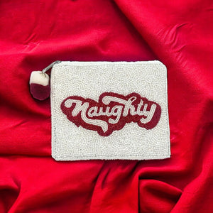 😈 Naughty Design: Featuring a bold "Naughty" design, this pouch is perfect for adding a touch of mischief to your holiday ensemble.
