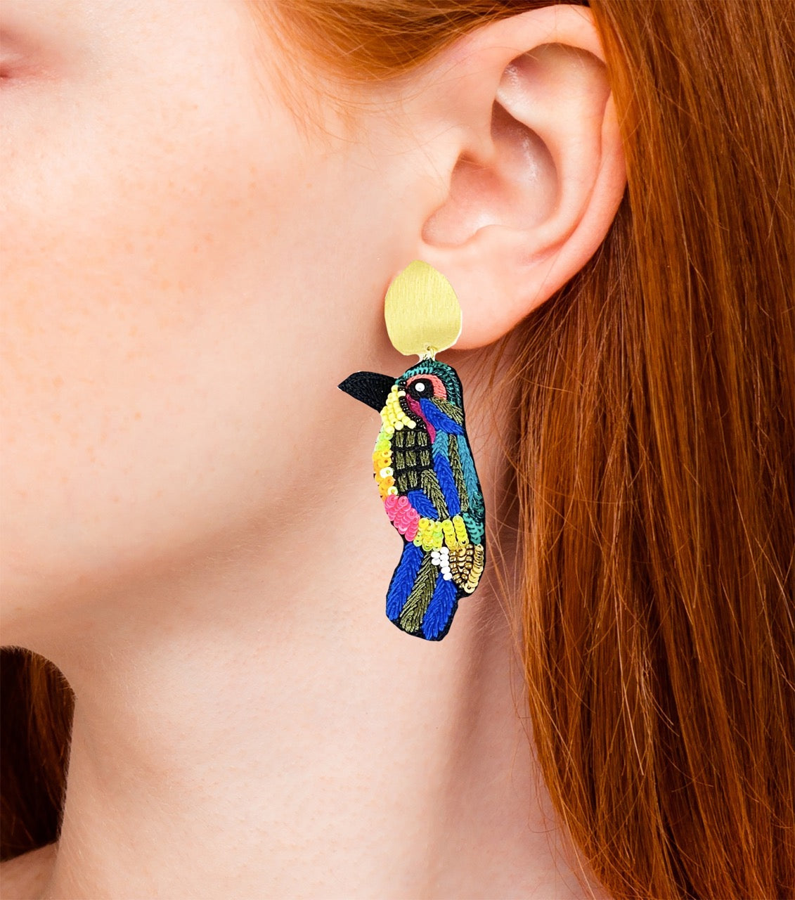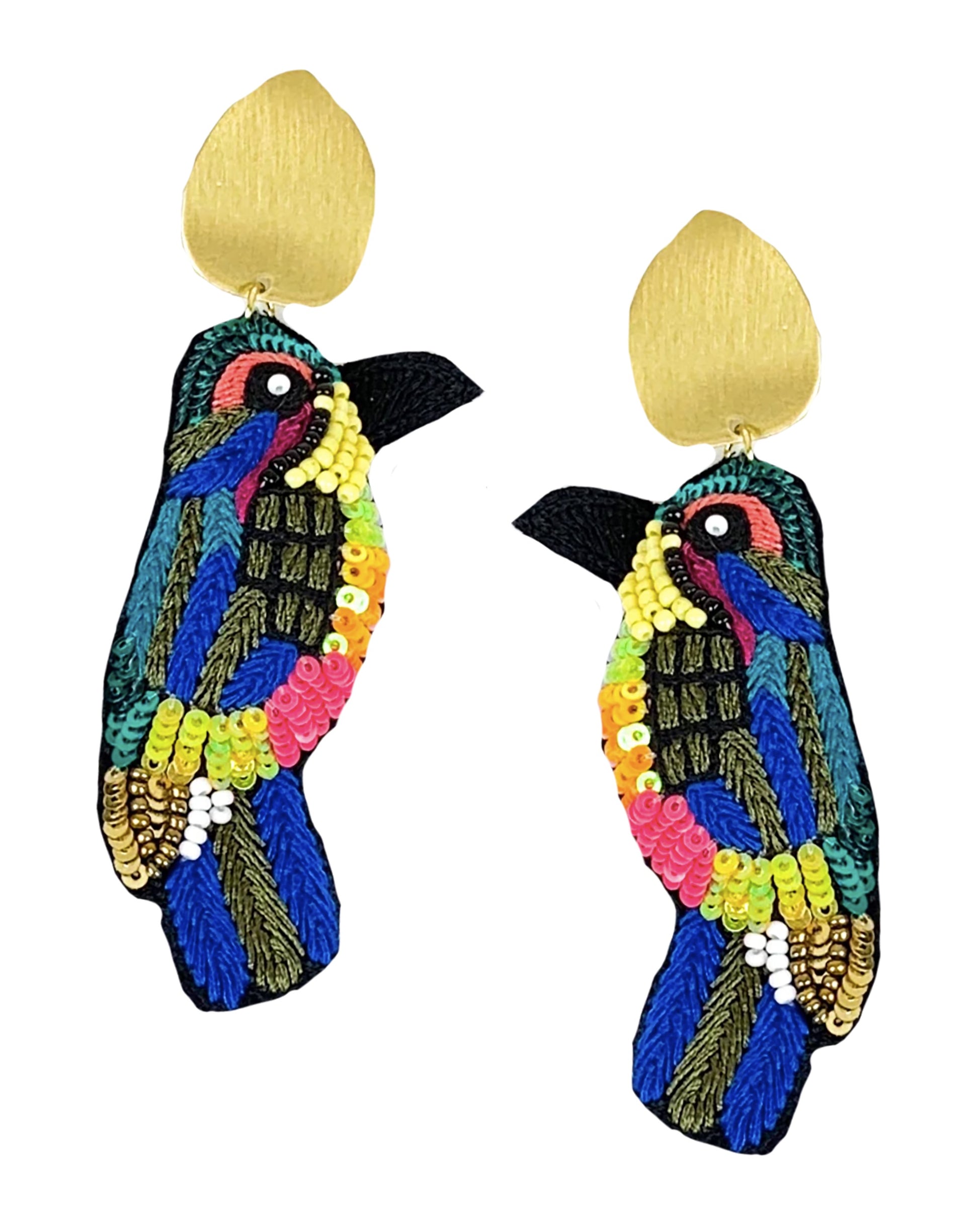 Entertain with a rainbow palette of sequin feathers adorning the happy silhouette of our Birds of Paradise Earrings. These birds will be sure to get any party started. Hand-crafted with hypoallergenic materials for comfortable wear.