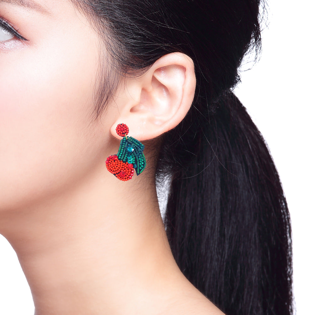 Whimsical accents and ornate seed beads always set the tone of your rarity. Detailed beauty and bold color, as seen in our cherry-shaped Cherry Burst Earrings, make both a dreamy and delectable combination.