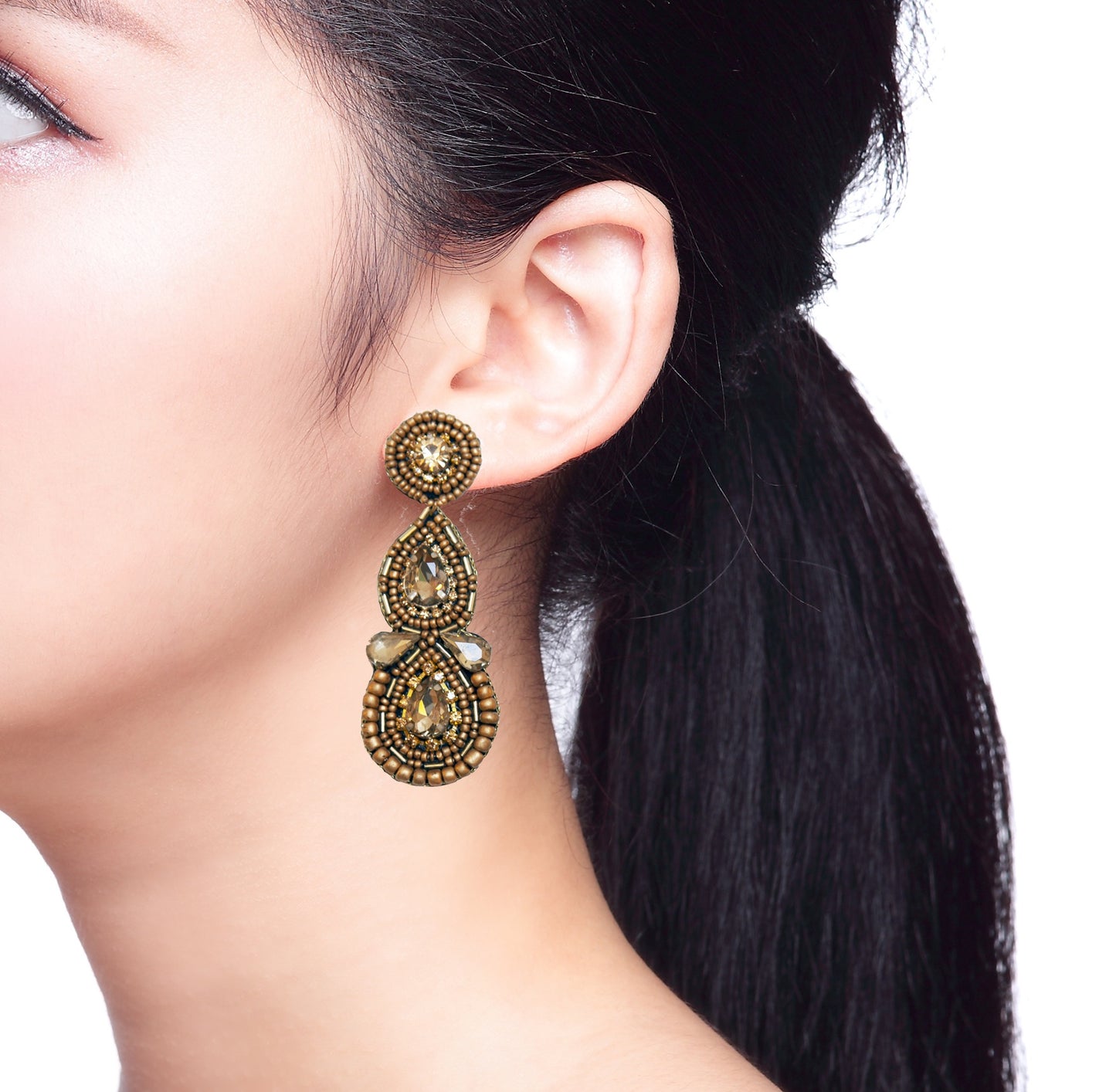 According to legend, Sevilla is a town that was founded by Hercules, the Roman god for strength. Our earrings are designed to be a spectacular set of teardrop earrings, beaded and bedazzled for a stunning, elegant finish. They are lightweight statement earrings, so no need for your ears to have Herculean strength to wear them comfortably.