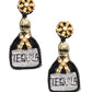 Pair these "Tequila Twinkler Onyx Earrings" with a sleek black dress and gold accessories for a night out, or add them to a casual outfit to inject a bit of fun and flair. These earrings are perfect for anyone looking to make a statement and showcase their love for tequila in a stylish and elegant way.