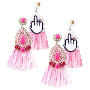 • Unique Fringe Design: 🎨 Featuring a wide fringe stitching at the base, these earrings are a standout piece that adds flair to any outfit.