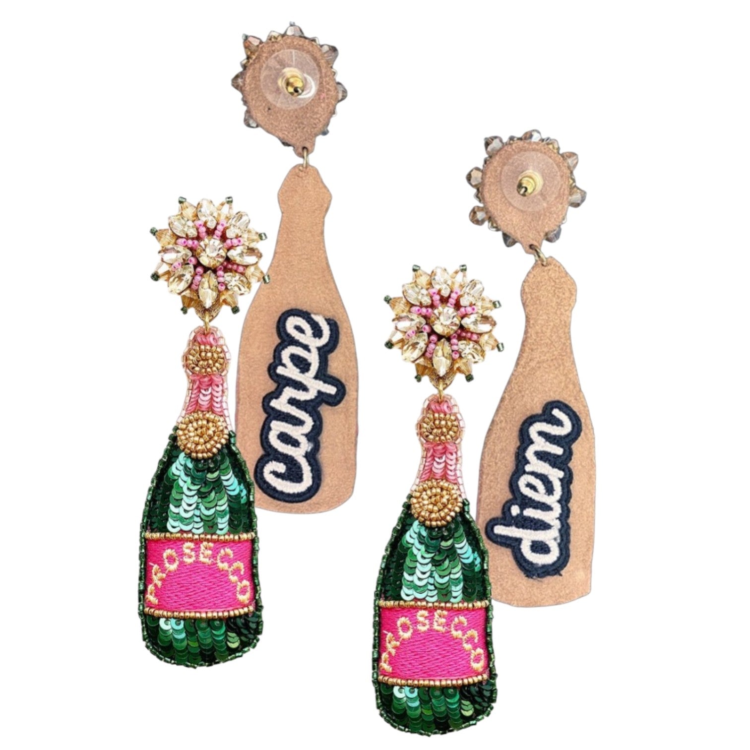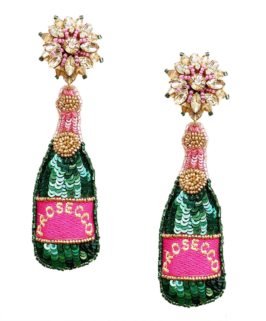Another round please, because a celebration is in order. Be the life of the party and always toast-worthy at any event in our beaded Prosecco Bottle earrings.