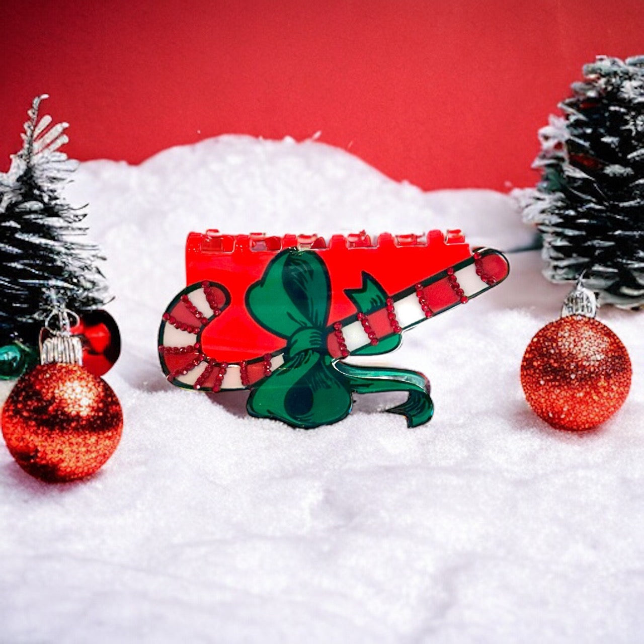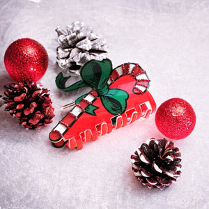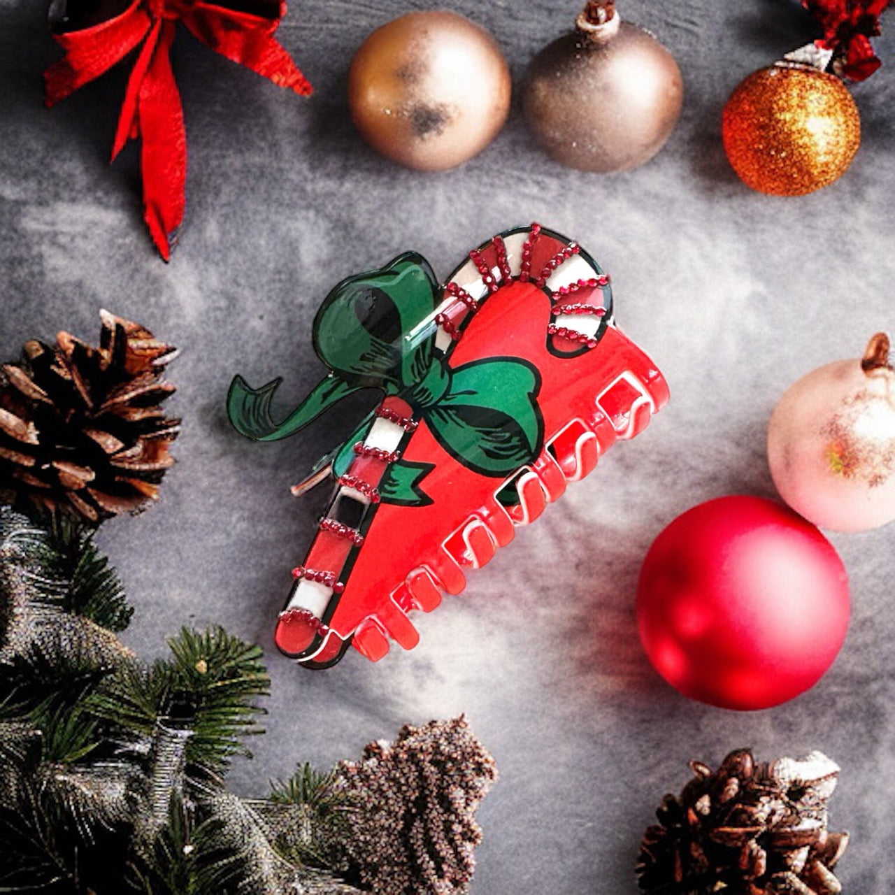 • Candy Cane Cheer: These festive hair clips evoke the spirit of the holidays with their bright red and white candy cane stripes. Perfect for adding a touch of festive flair to any outfit, these clips are sure to spread holiday cheer wherever they go.