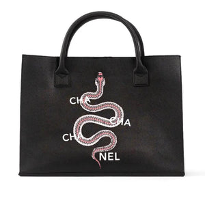Pair the Cha Cha Chanel Tote with your favorite black dress for a sleek, monochromatic look, or use it to add a sophisticated touch to a casual outfit. The stylish snake design makes it a standout piece that elevates any ensemble.