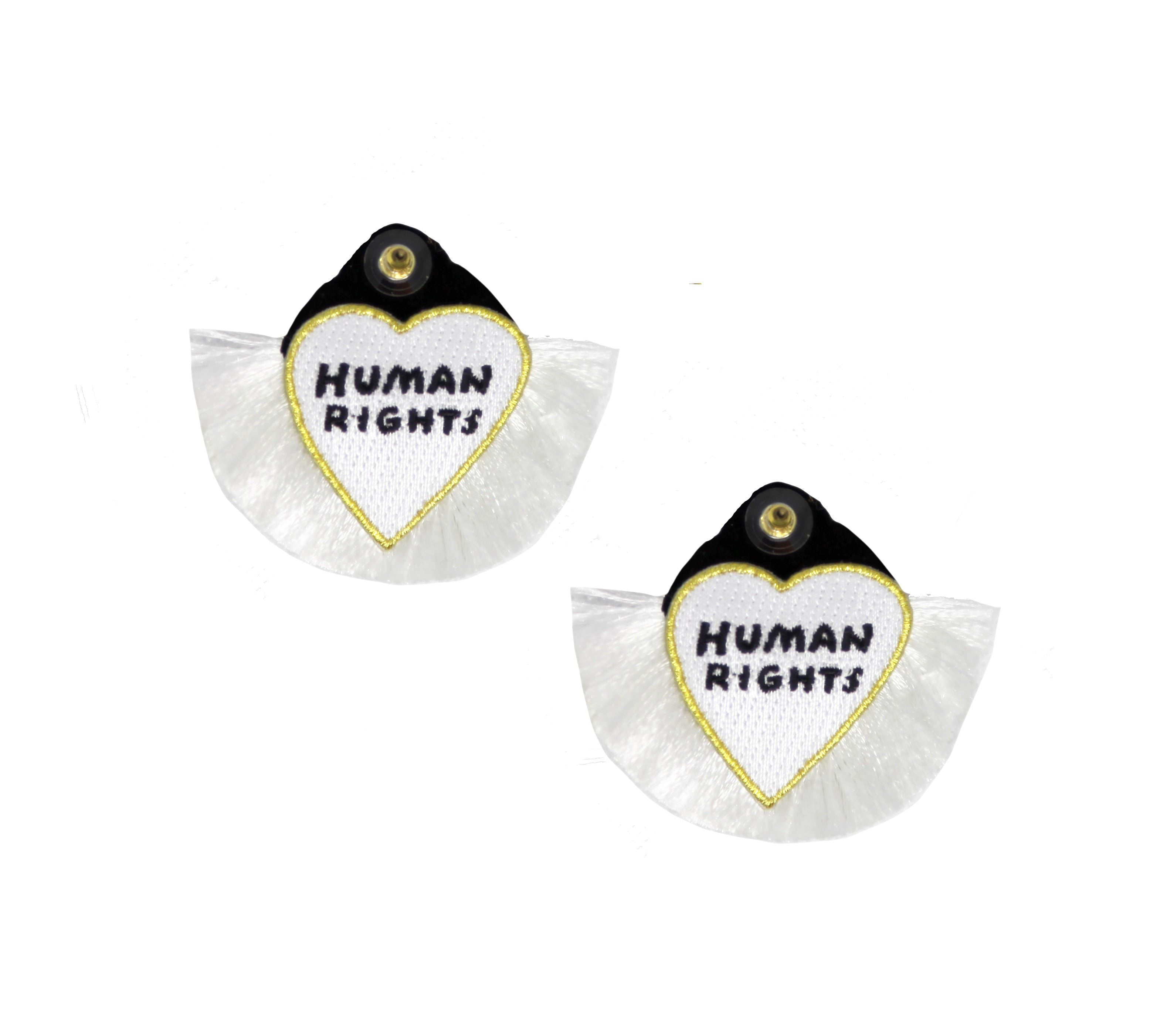 • Graphic Empowerment Jewelry ✊: With “HUMAN RIGHTS” stitched on like a badge of honor, these earrings are activism meets artistry.
