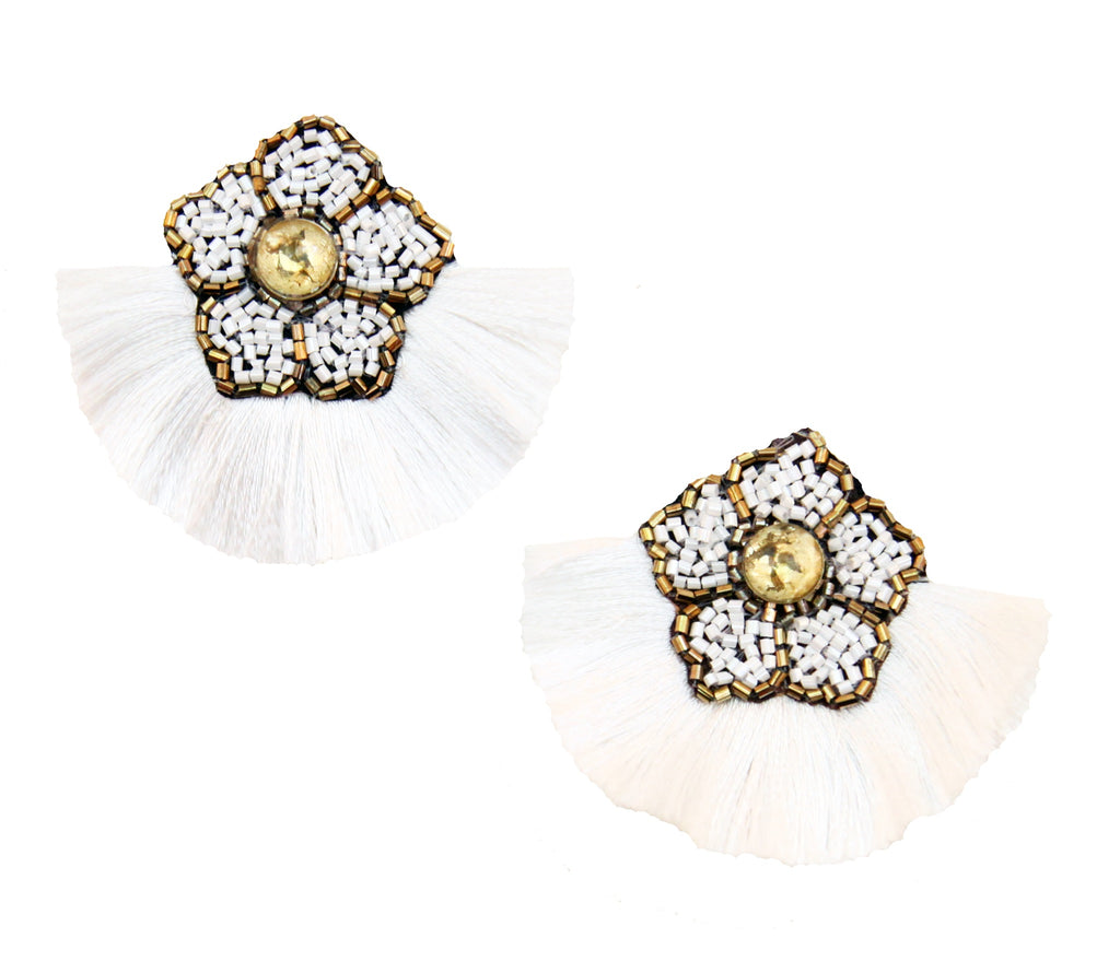 • Ivory Flower Statement Earrings 🌼: Standout studs with layered floral details and bold beaded centers make these anything but basic.