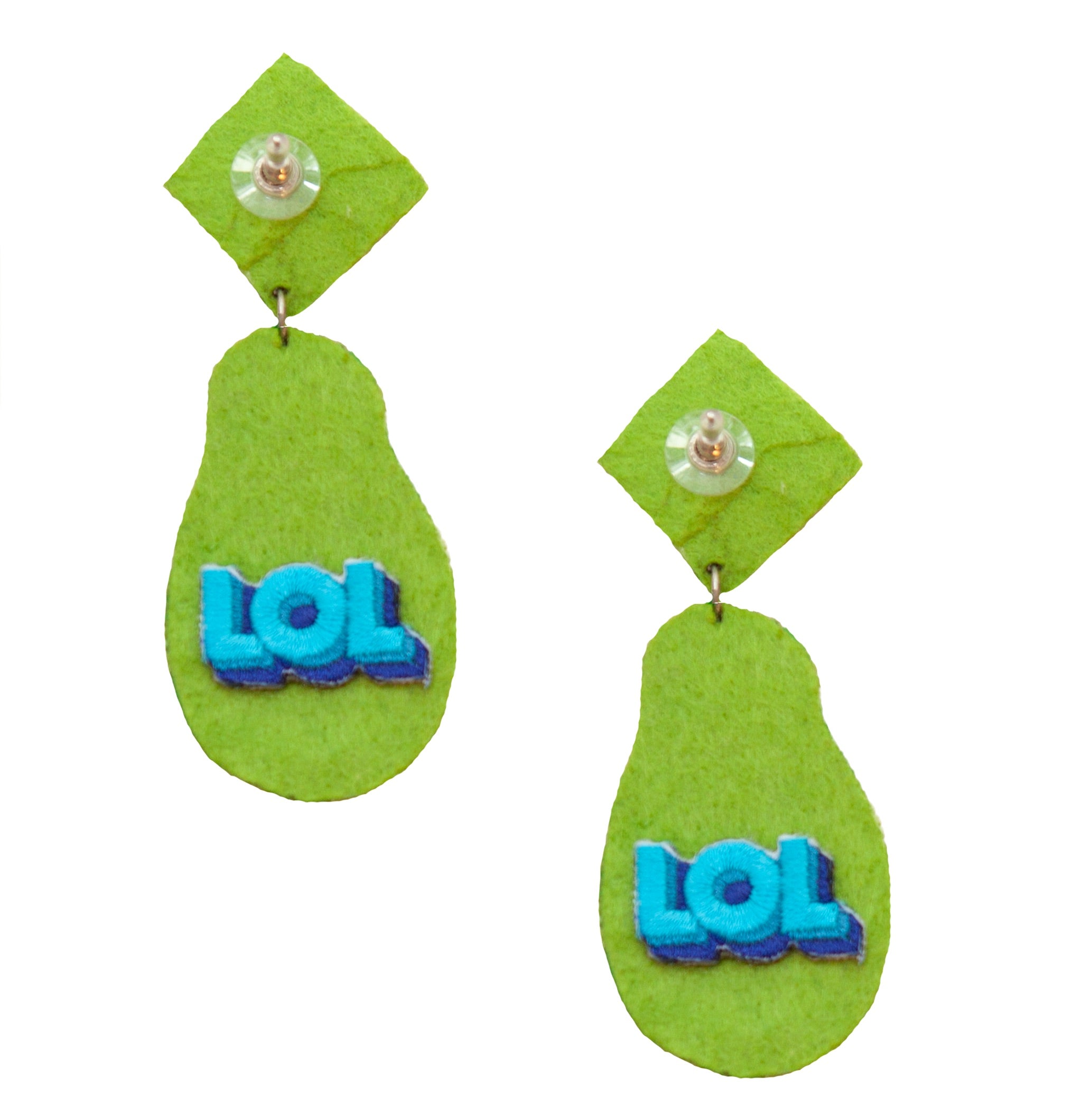 • LOL Graphic Embellishment 🤣: A bold blue “LOL” patch brings sass and humor—finally, earrings that match your sarcasm.
