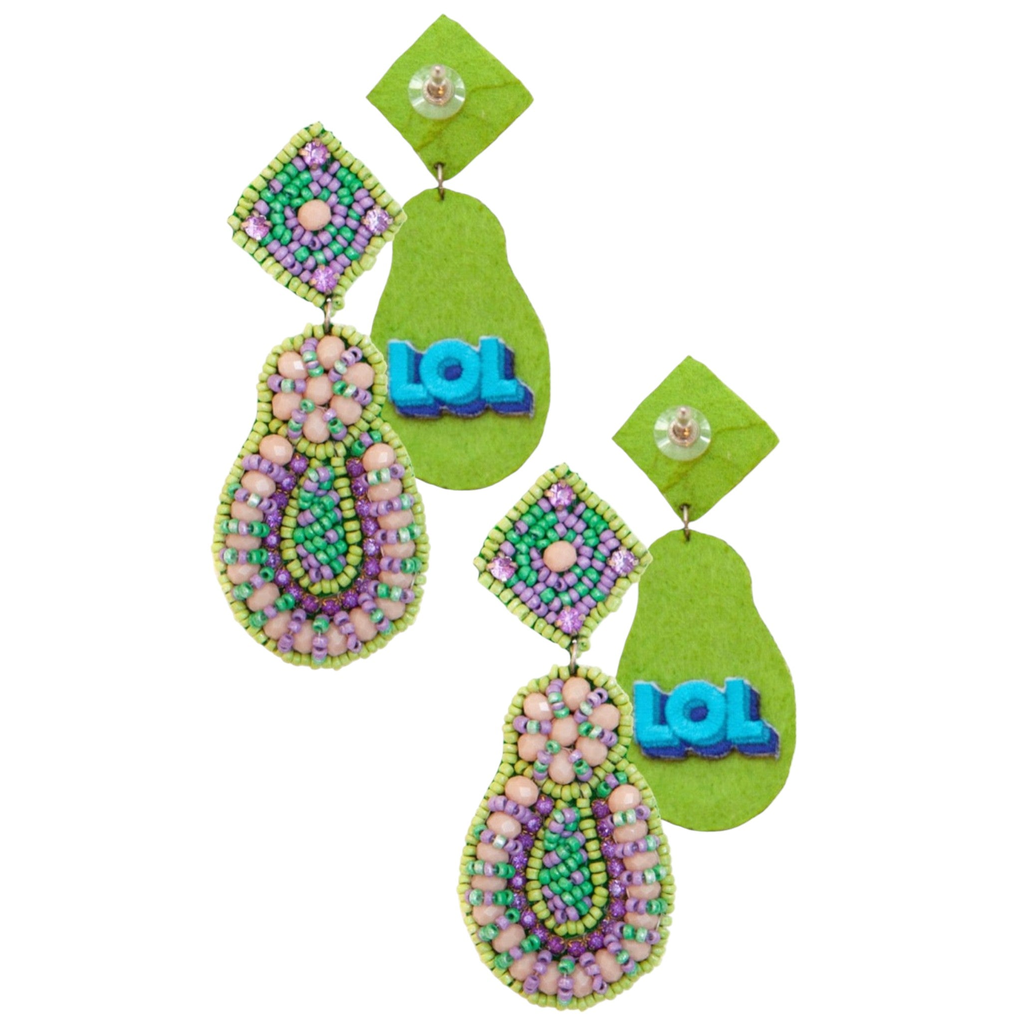 Meet your new favorite convo starters: the Tigerlily Green Earrings. These bold green beauties come stacked with pastel beadwork, sparkle, and a cheeky blue “LOL” that says what you’re actually thinking. Loud, proud, and playfully unbothered.
