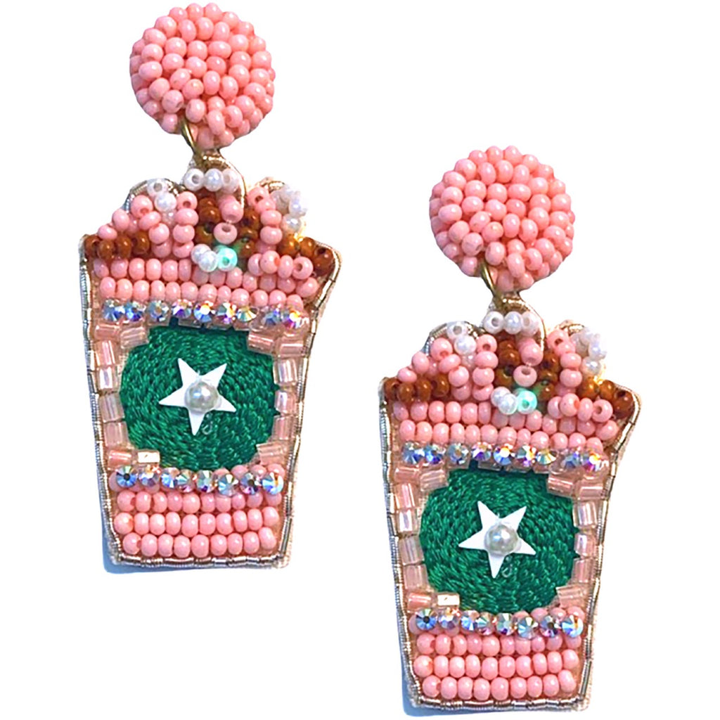 A soft color palette and assortment of delicate Swarovski stones will keep any outfit lifted all season long. We promise - our Strawberry Frappuccino earrings are only made with the berry best :)