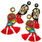 • 🎀 Bold Red Tassels: Three red tassels create a dynamic and eye-catching finish, making these earrings stand out in any crowd.