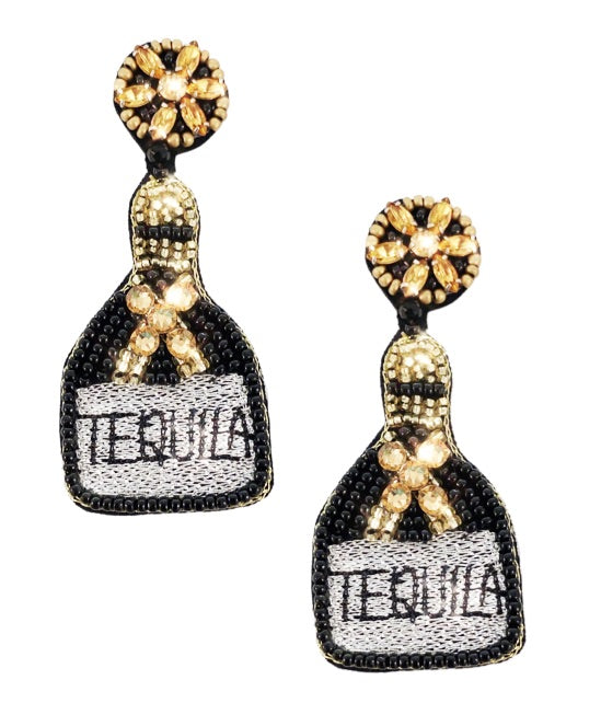 Embrace your wild side with the bold and stylish "Tequila Twinkler Onyx Earrings." These statement earrings feature a striking combination of gold beads and embroidered "Tequila" stitching on a deep onyx base. Perfect for adding an artful and elegant touch to any outfit, these earrings are sure to become your go-to accessory for making a statement.