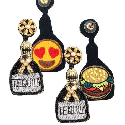 • 🍸 Embroidered Tequila Design: These "Tequila Twinkler Onyx Earrings" feature a unique embroidered "Tequila" design, perfect for those who love to showcase their fun and vibrant personality.