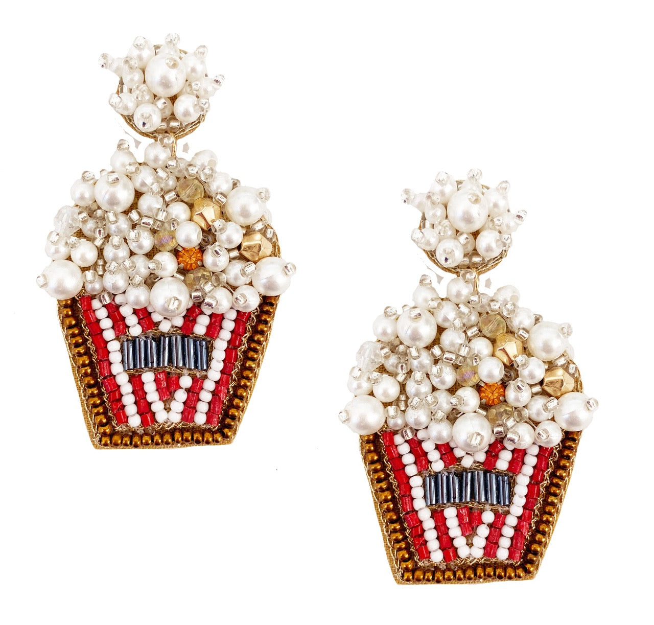 Just like popcorn for any movie-lover, pearl continues to be a must-have in any accessory-aficionado's closet. We promise you'll be popping off in this perfect pair of fun, party-ready Popcorn Earrings. Designed with intricate pearl beading to mimic fluffy popcorn and adorned with playful patches, these earrings are the ultimate conversation starter for any event.