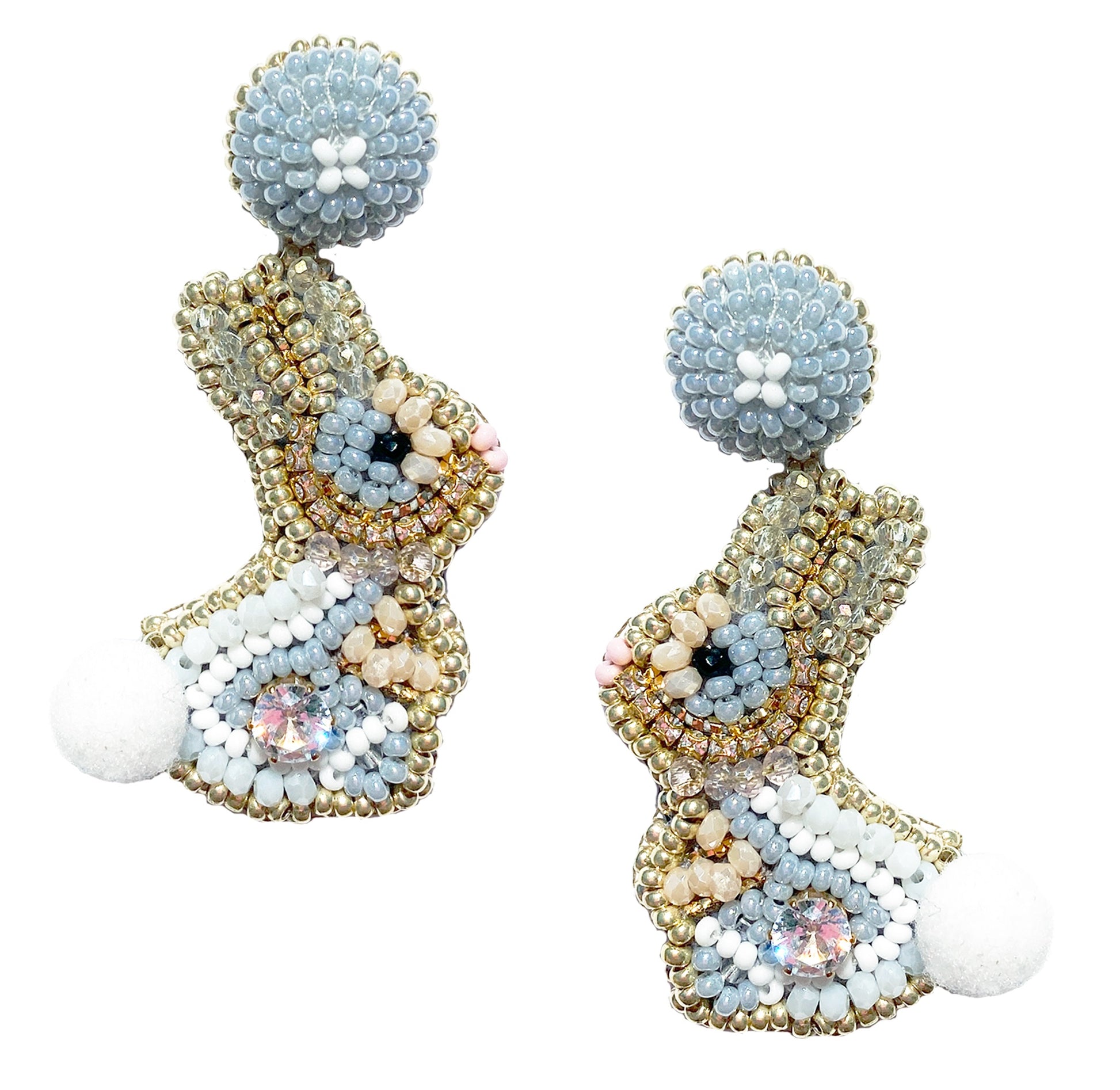 • Unique Design: The Bunny Love Earrings feature a charming bunny design with blue and gold beading and a fluffy pompom tail.