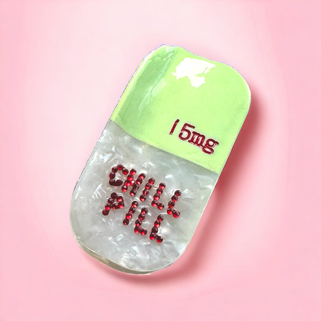 Elevate your hair game with our exclusive Chill Pill Pink Hair Clip! This chic and playful accessory features a vibrant pink chill pill charm that adds a touch of edgy femininity to any hairstyle. Its trendy design and high-quality construction make it a must-have for fashion-forward individuals who want to stand out from the crowd. Whether you're rocking a casual ponytail or a sleek updo, this hair clip will effortlessly elevate your look. Add some chill to your style and order your Chill Pill Pink Hair Clip today!