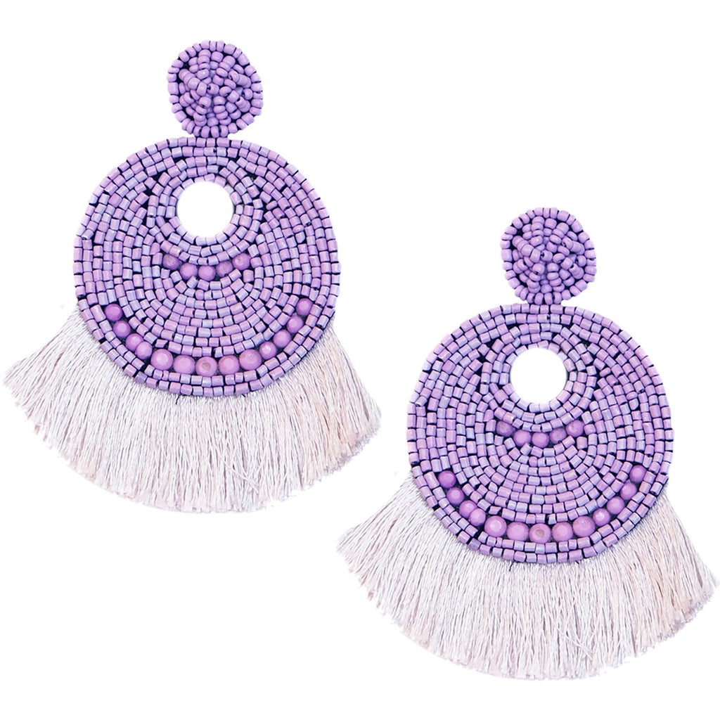 • 💜 Chic Lilac Beading: The soft lilac beads add a trendy and stylish element to these statement earrings, making them a standout piece.