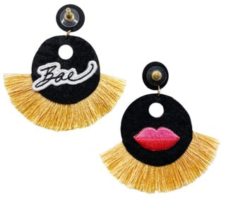 • Unique Patch Design: The "Bae" and lips patches add a trendy and playful element, making these earrings a standout accessory.