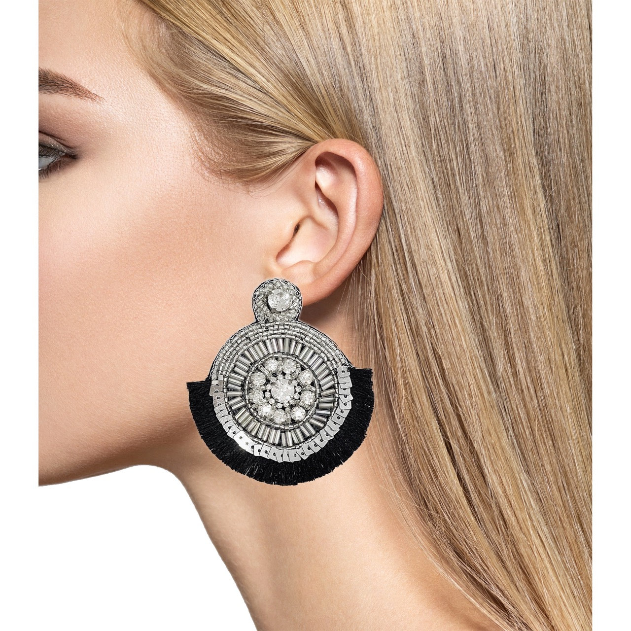 • 🎀 Stylish Fringe Details: The black fringe adds a touch of sophistication while providing a beautiful contrast to the silver, making these earrings stand out.