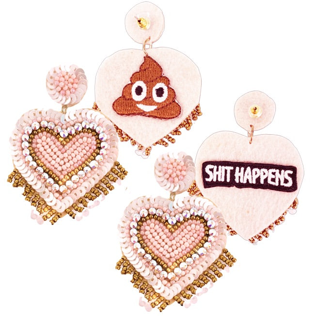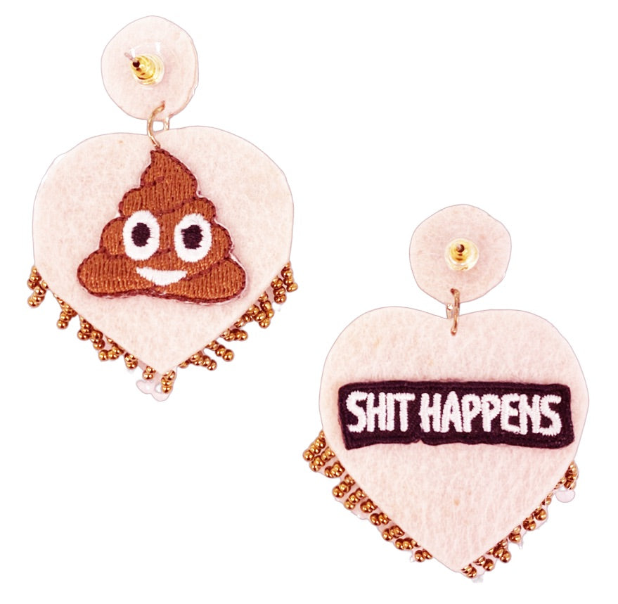 • 💩 Playful Patch Design: The "Sh*t Happens" and Poop Emoji patches add a fun twist to these otherwise elegant earrings, making them a conversation starter.