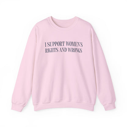 Pair this "Support Women's Rights and Wrongs" crewneck with your favorite jeans or leggings for a casual yet powerful look. Layer it under a denim jacket for added style, or wear it oversized with shorts for a laid-back vibe. This sweatshirt's message makes it a perfect conversation starter, wherever you go.