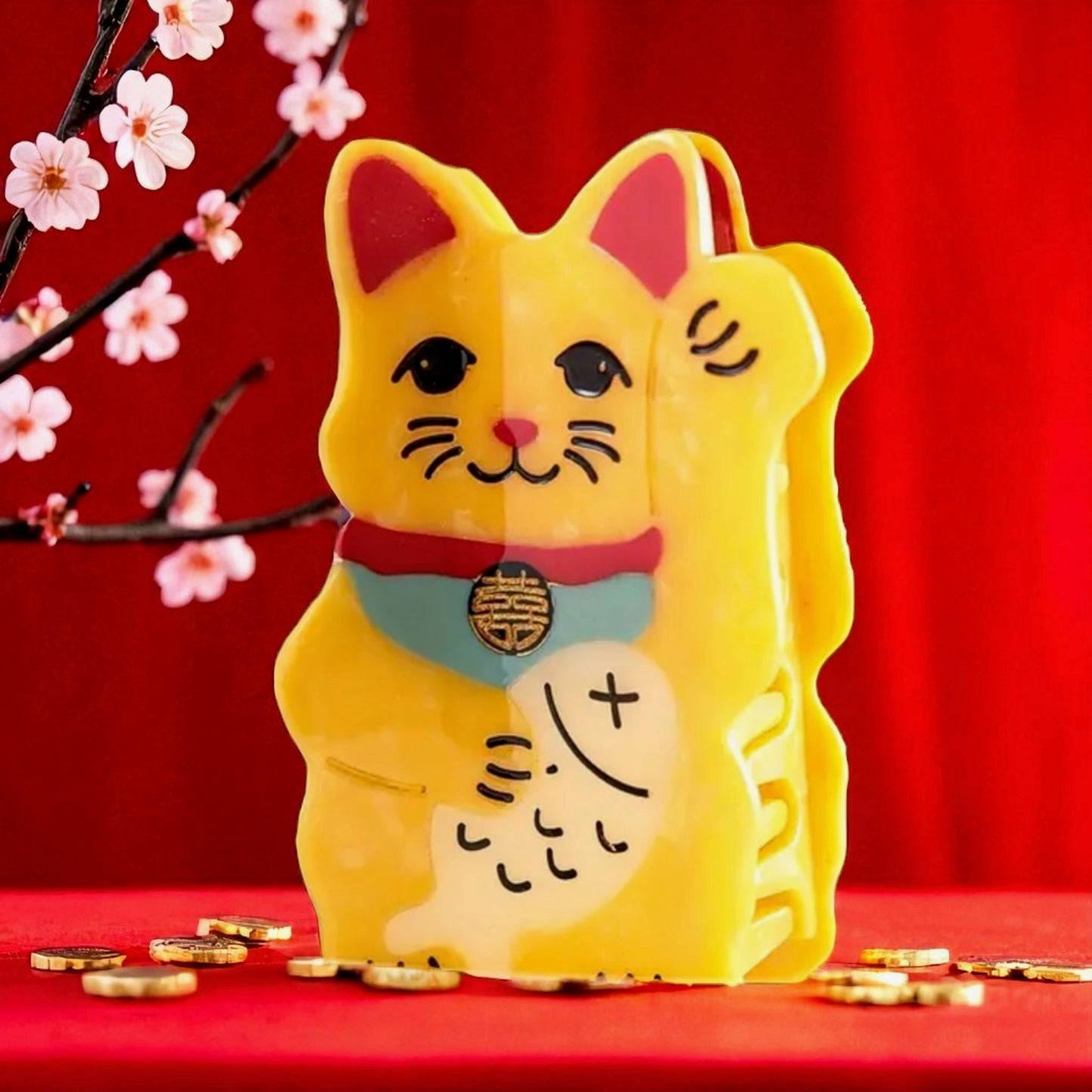 Style the Lucky Cat Hair Clip by securing it in a high ponytail or bun for a cheerful, chic look. Pair it with casual wear or festive attire to instantly elevate your style. This playful accessory is perfect for showcasing your personality and adding a unique touch to any outfit.