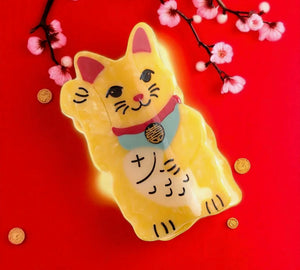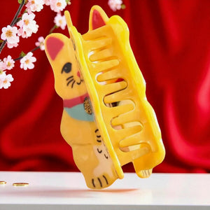 Embrace a playful vibe with our charming Lucky Cat Hair Clip. Perfectly crafted to bring a smile, this vibrant yellow accessory showcases a friendly feline design, ideal for adding a touch of whimsy to any hairstyle. Whether for casual outings or festive events, this cute hair clip is a must-have addition to your collection.
