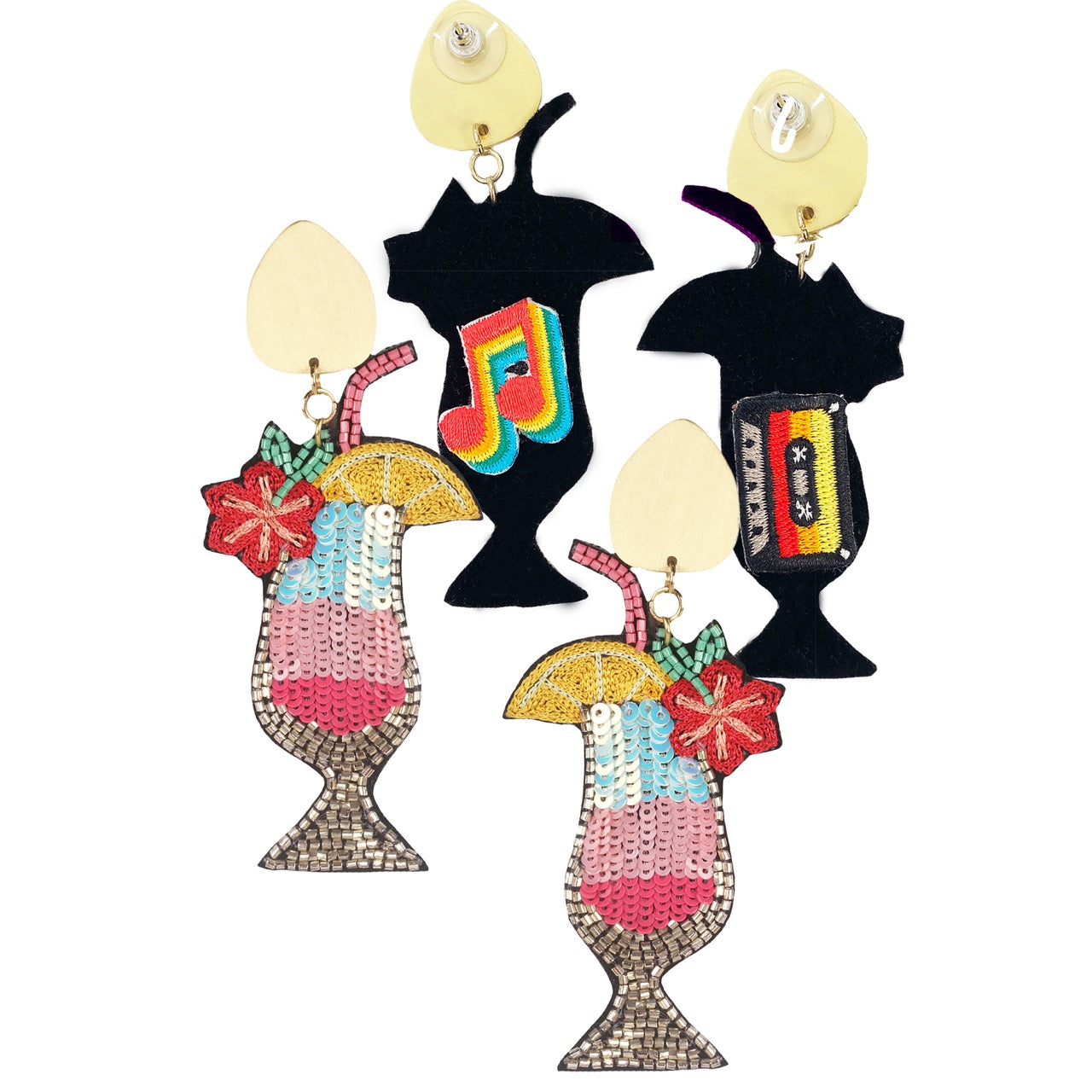 A statement pair of earrings like our Piña Cola-DUH Earrings not only reduces the thought needed while getting dressed, but also embodies confidence and effortless "cocktail" style. These fun earrings feature playful music note and cassette tape patches, perfect for adding a retro twist to your look.