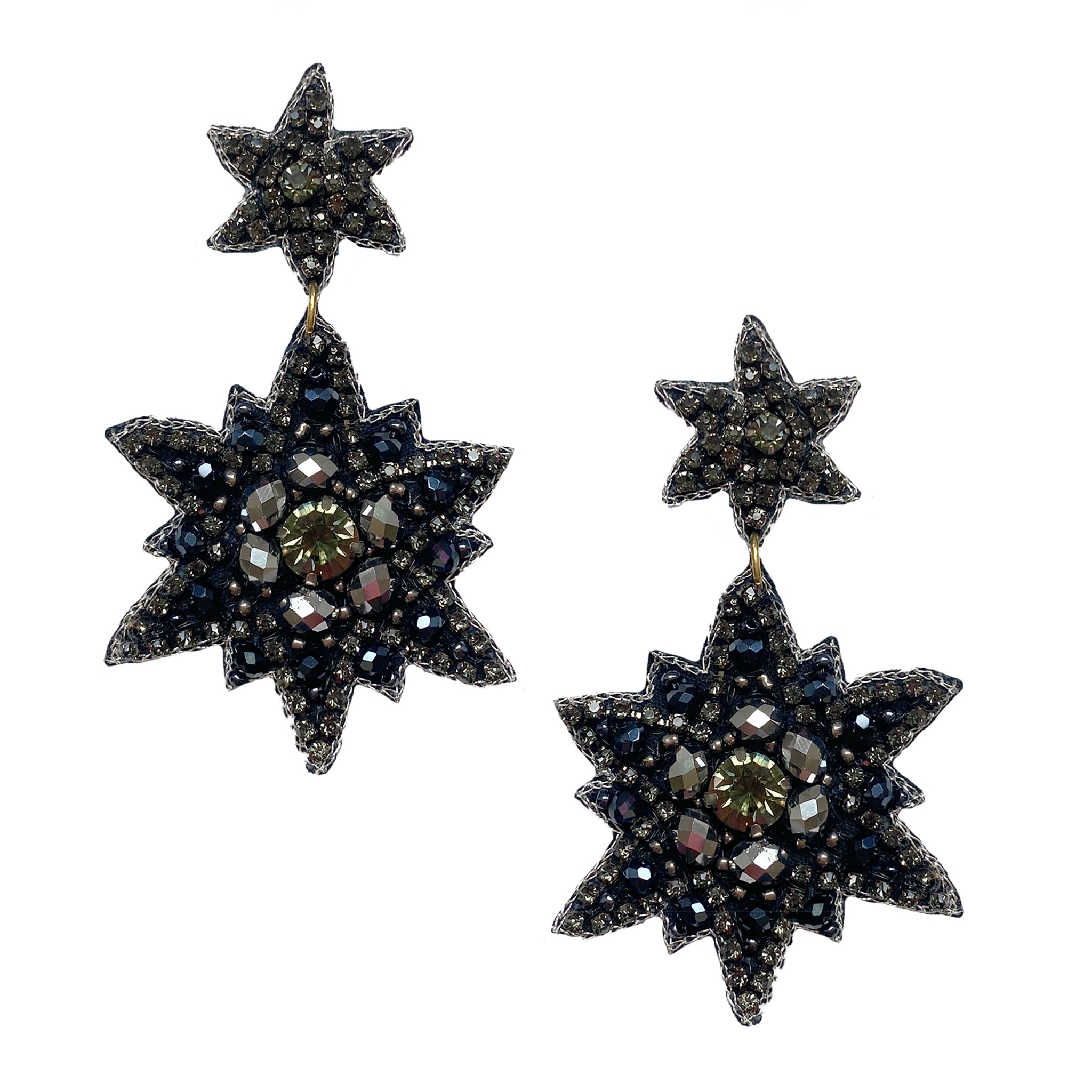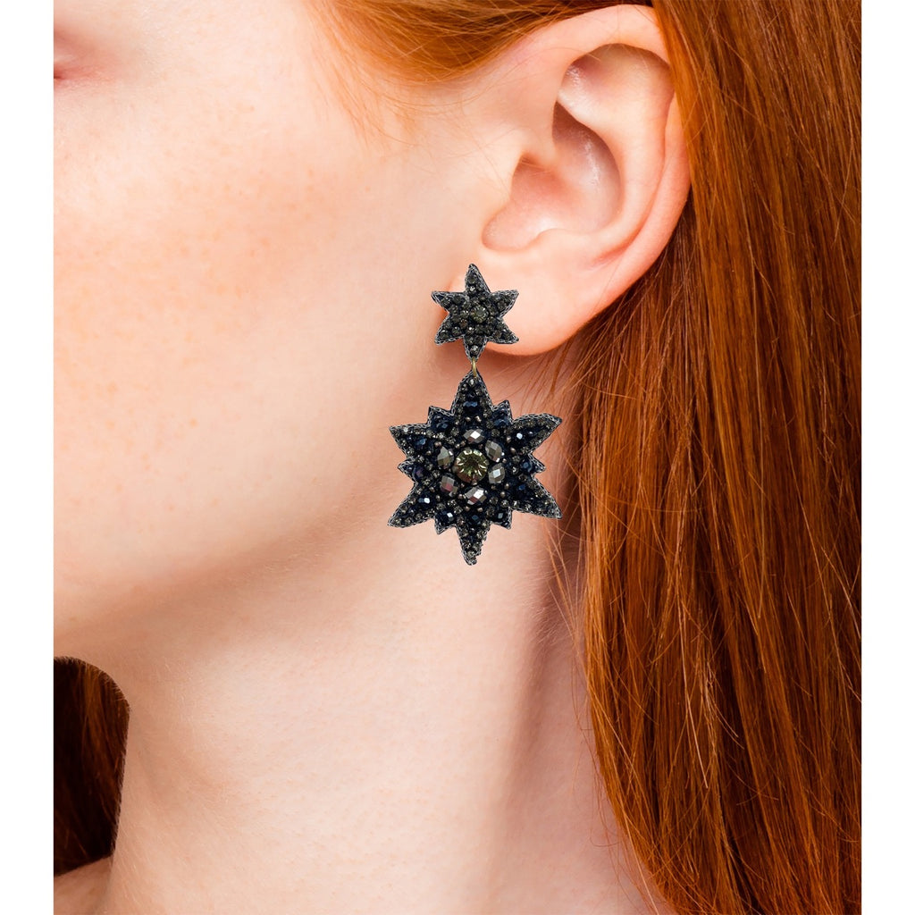 Pair the "Starstruck Onyx Earrings" with a sleek black dress or your favorite casual outfit to add a bit of celestial flair. These earrings are perfect for making a bold statement, whether you're heading to a party or just want to add some sparkle to your everyday look.