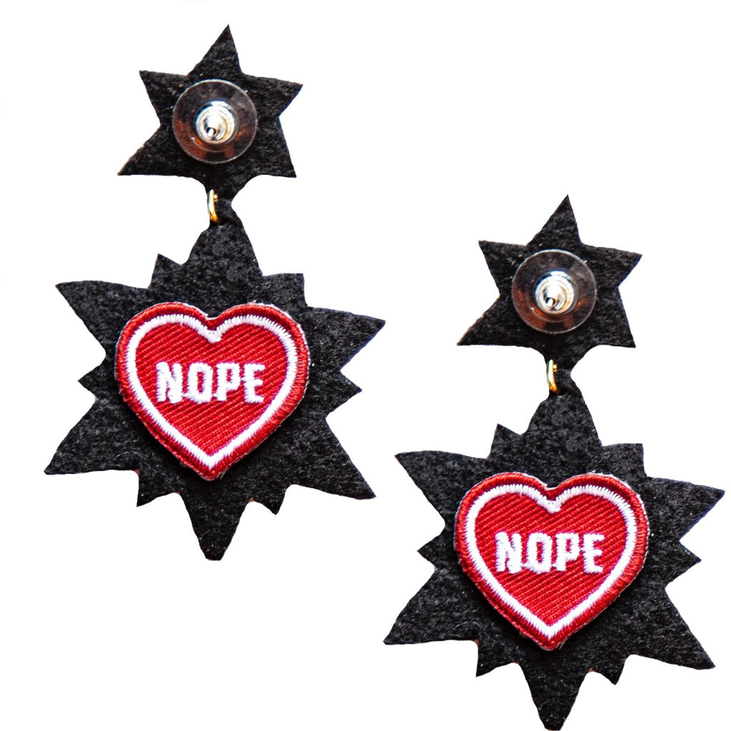• Playful and Bold: The "Nope" patch adds a fun twist, making these earrings perfect for those who love to express their personality through their accessories.