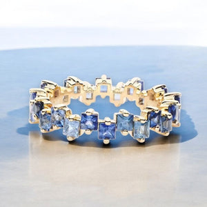 This elegant gold band ring features stunning blue gemstones that glisten with every movement. Designed for women who appreciate stylish jewelry, this fashionable ring is perfect for any occasion, enhancing your accessory collection.