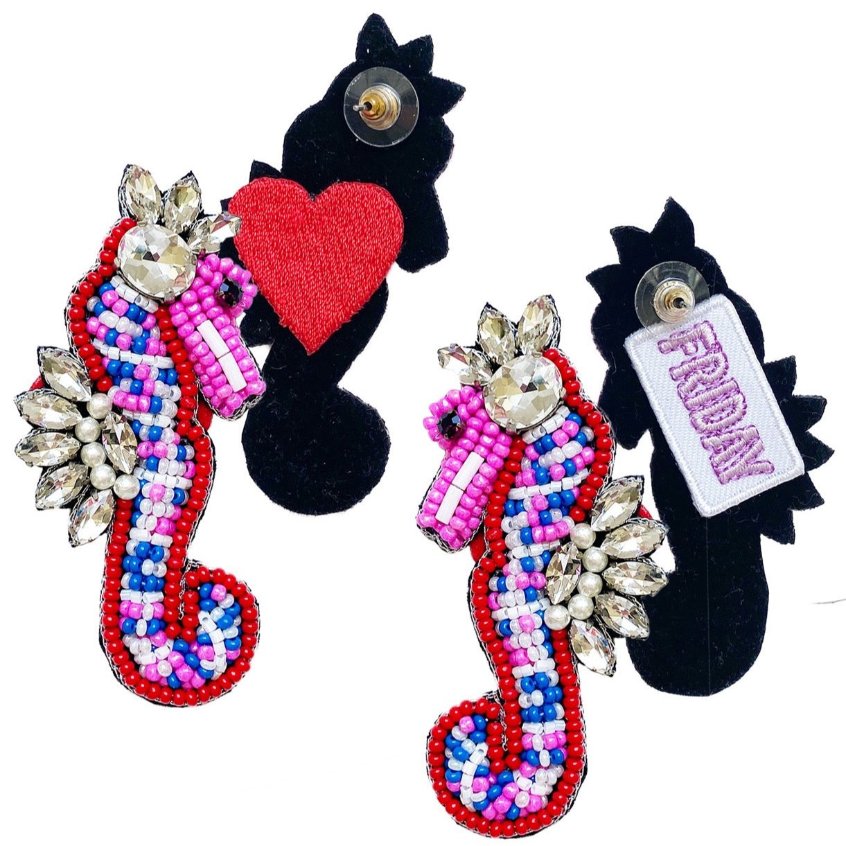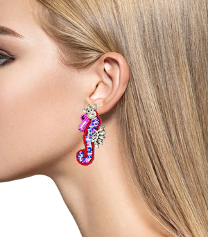 • 🌊 Marine-Inspired Design: The earrings feature a seahorse design with vibrant beads and rhinestones, bringing a playful marine-inspired touch to your look.