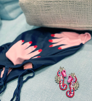 Our Tickled Pink Seahorse Earrings feature a vibrant beaded body and rhinestone fins for an edgy yet feminine look. Perfect for those who love marine life with a touch of sparkle!