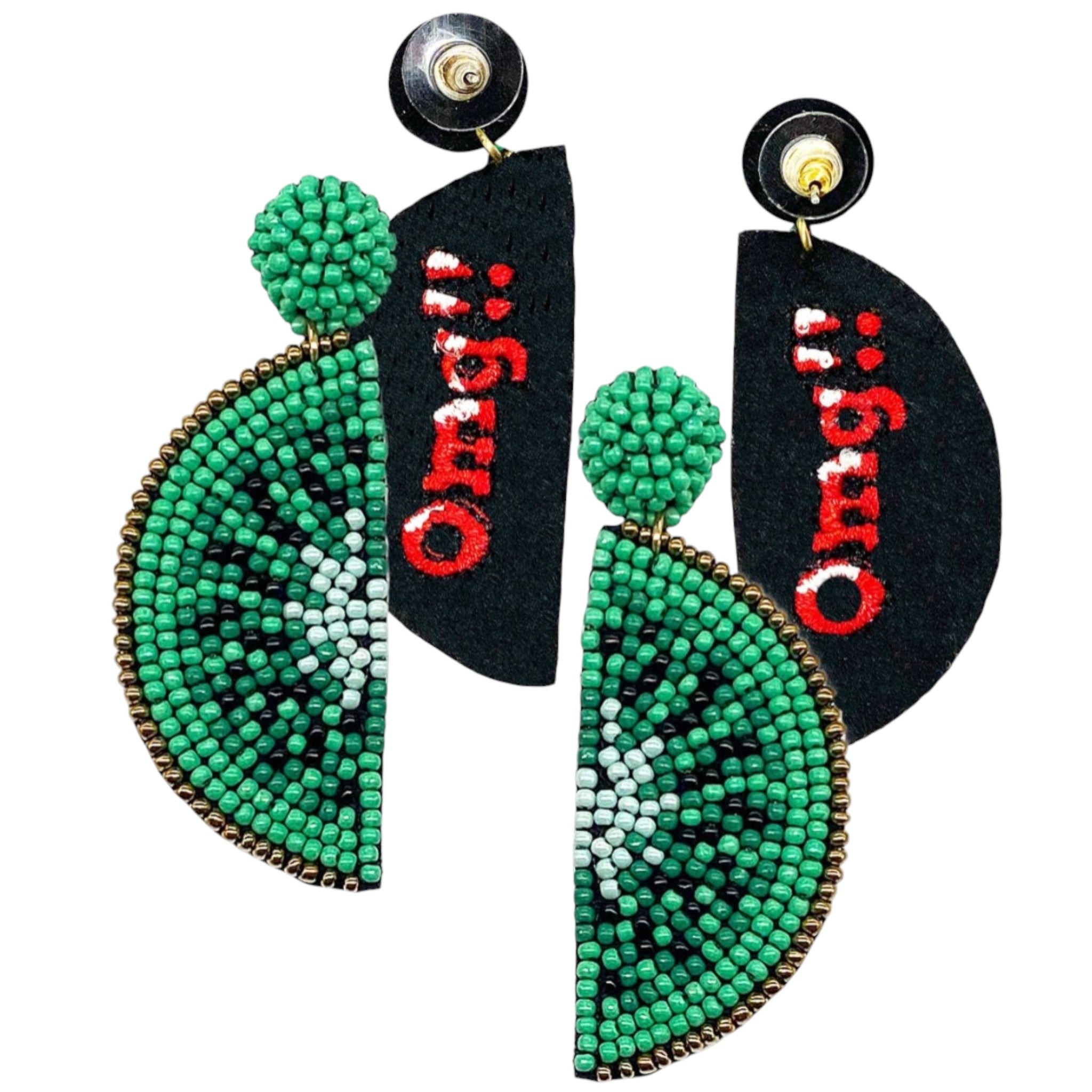Summer-ready style should be effortless. Go from beach to bar with our Kiwi Earrings, designed to garnish both your look and cocktail. Featuring a playful "OMG!!" patch and vibrant beaded kiwi design, these earrings are your go-to accessory for sunny days and fun nights.