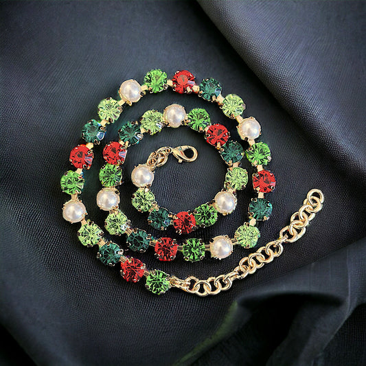 Crystal Gemstone Necklace (Holiday Red and Green)
