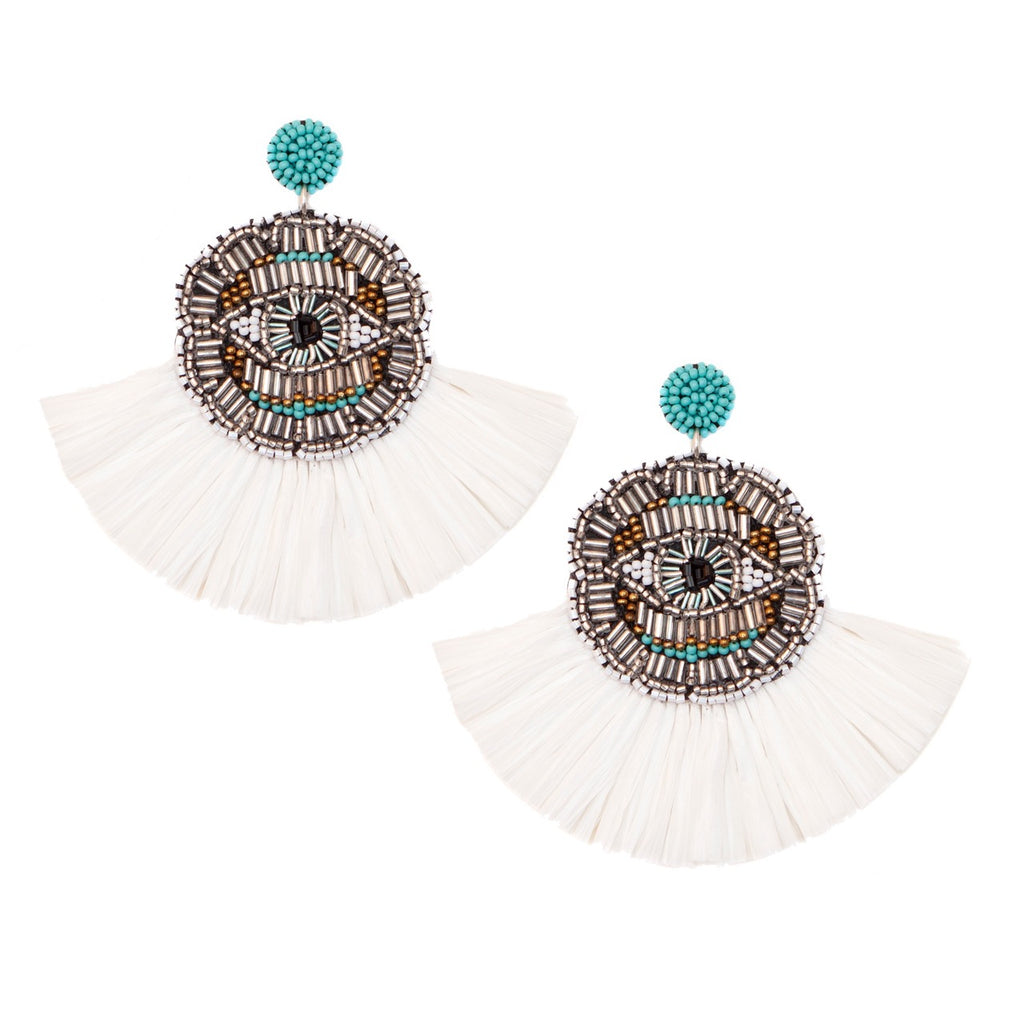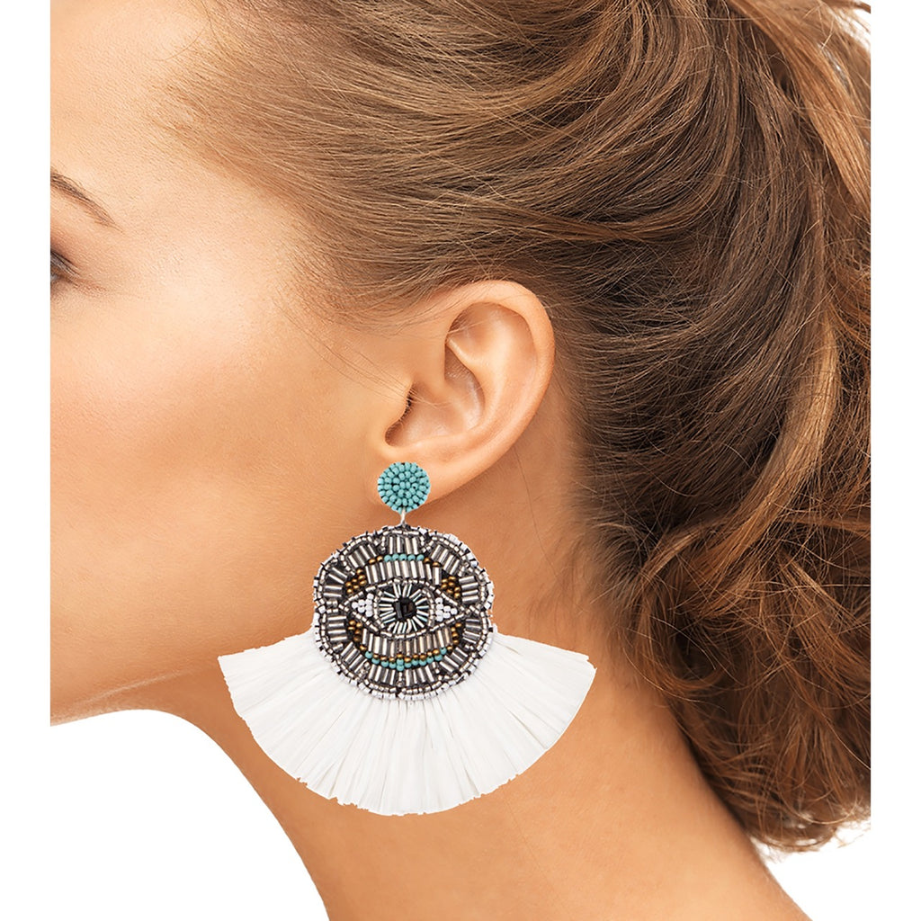 • Intricate Evil Eye Design: 🌟 Featuring a detailed evil eye design with sequins and fringe, these earrings add a touch of bold elegance to your look.