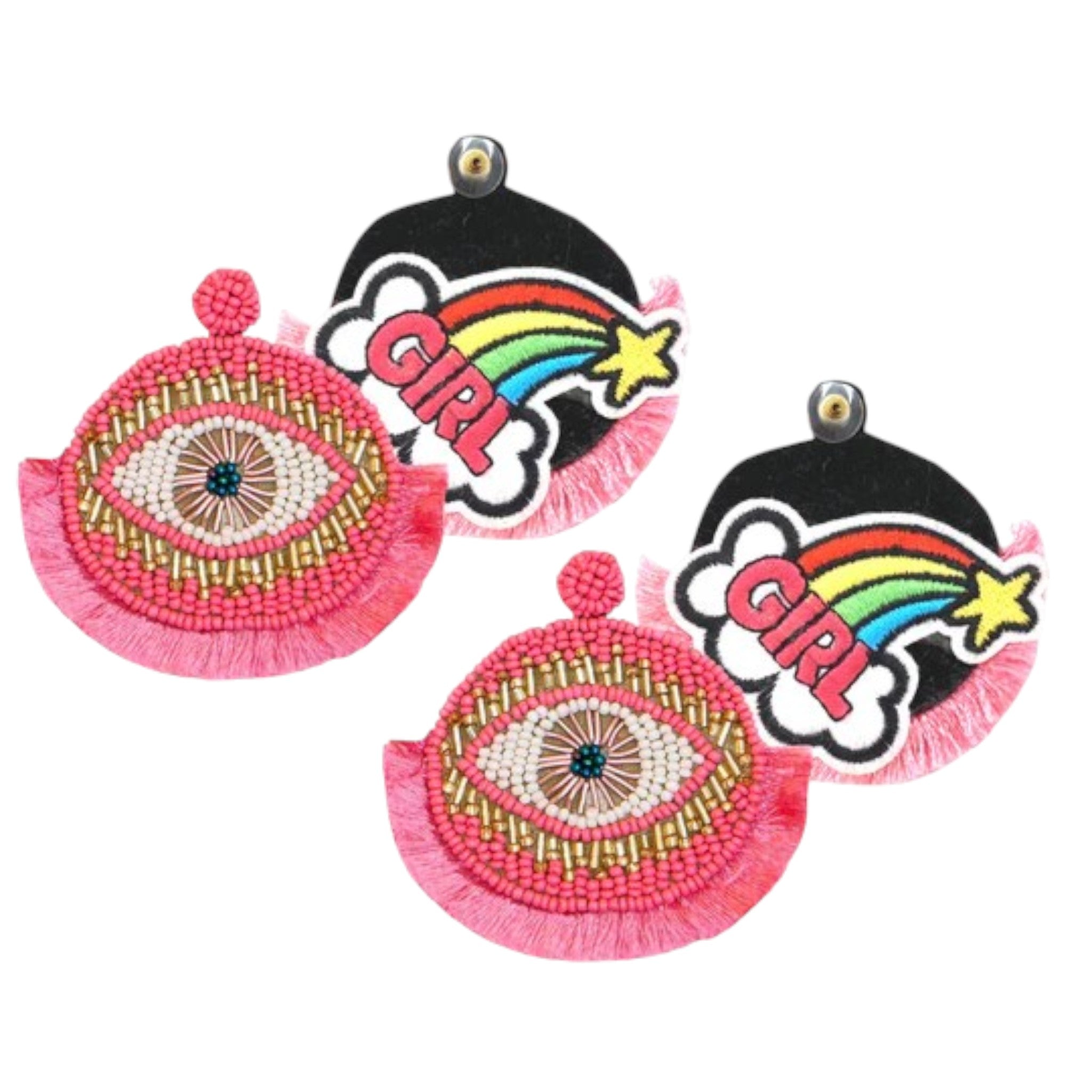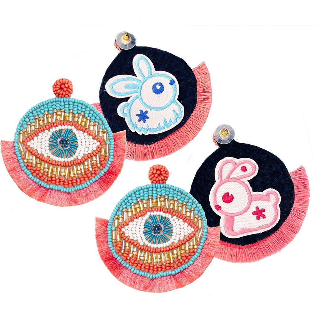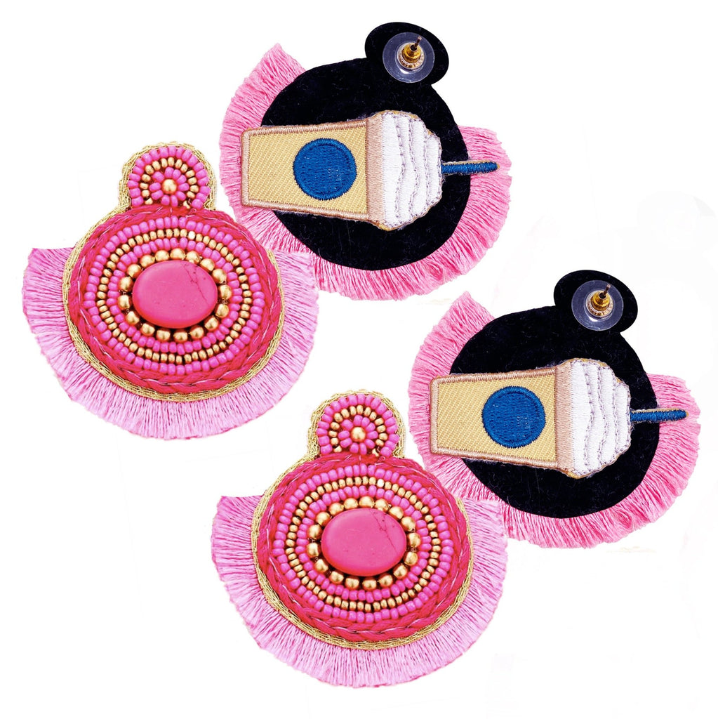 Our Eye Catcher Pink Earrings combine the classic evil eye design with short, lush fringes at the base and intricate beading for the ultimate, mysterious radiance. Catch your breath with this collection as it comes in a broad range of colors so there’s an earring for protection with any outfit you love.
