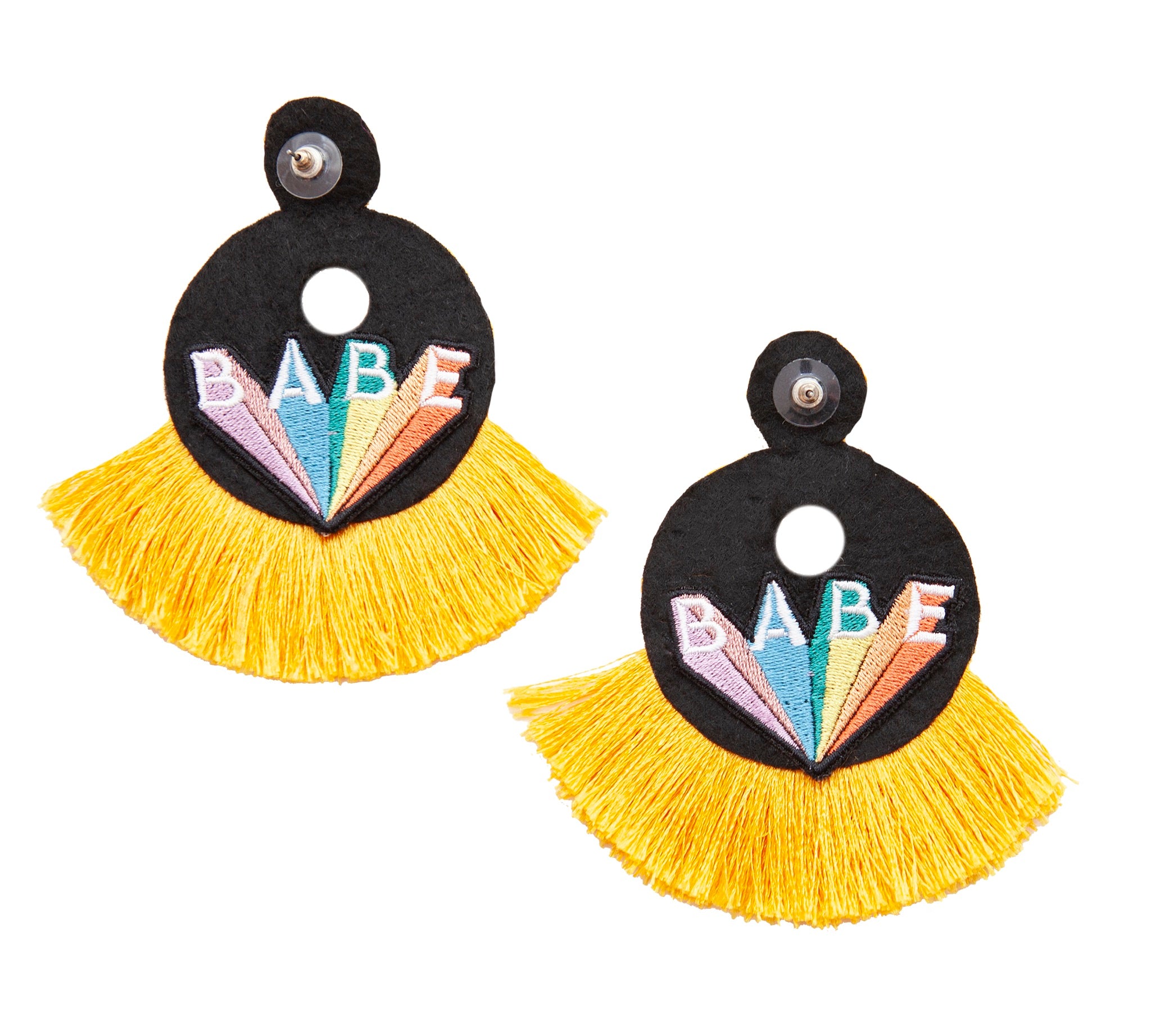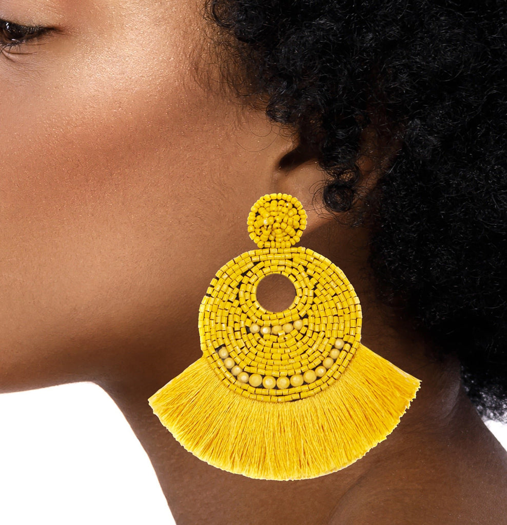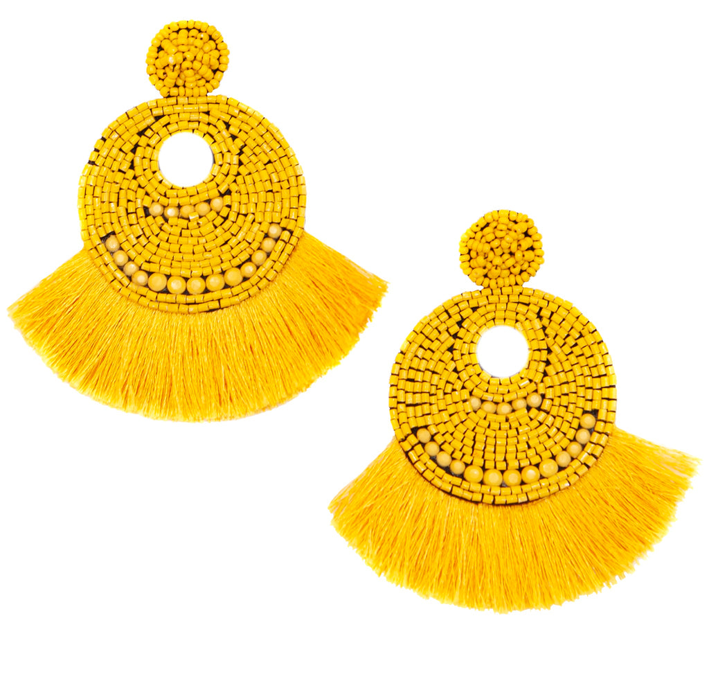 Bring a burst of joy to your look with our Fringe Benefits Yellow Earrings. These vibrant earrings are designed in a cheerful yellow hue, perfect for adding a positive vibe to any outfit. The bold fringe and beaded details make them a standout accessory, while the "BABE" patch adds a fun and empowering touch. Bright, fresh, and full of life—these earrings are a must-have for any fashion-forward individual.