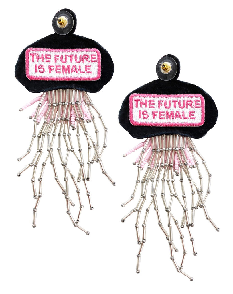 • Feminist Flair: Featuring the "The Future Is Female" patch, these earrings allow you to wear your values with pride.