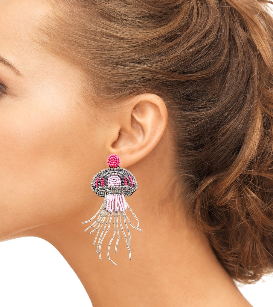 • 🌊 Ocean-Inspired Design: Dive into the dreamy depths with these jellyfish earrings, featuring intricate beading that captures the fluid elegance of the ocean.
