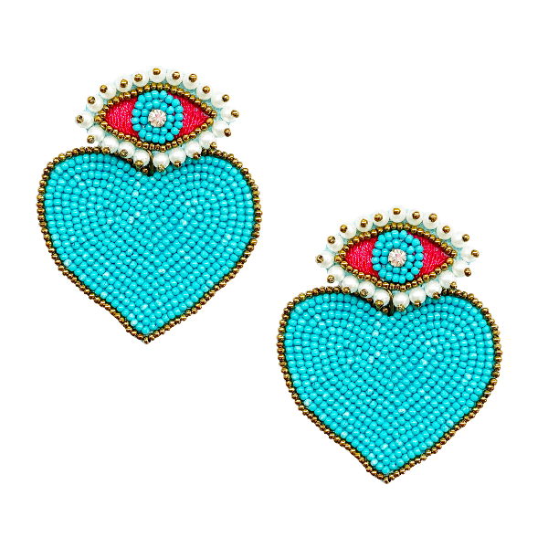 Say “Eye Heart You” in a bold new way with our Eye Candy Earrings. These vibrant, beaded beauties feature delightful colors and playful patch designs, including an evil-eye closure to ward off bad vibes. Make a statement with every look, whether you're going for fun and flirty or edgy and chic.
