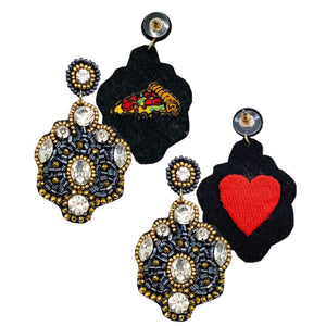 Playful and Unique Touch: The "Pizza Love" patch adds a fun, unexpected twist to these glamorous earrings, making them perfect for those who love to mix fun with fashion.