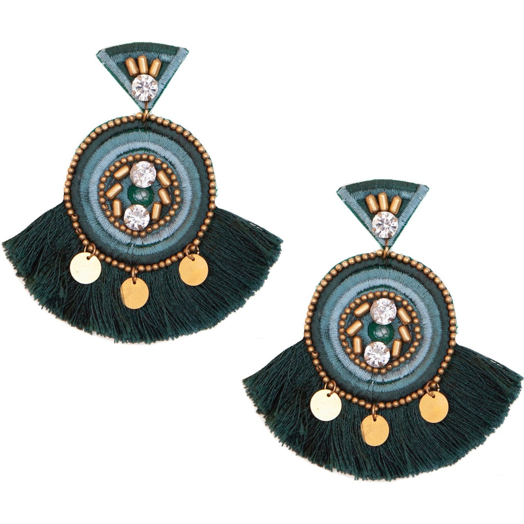 Elevate your style with the Daydreamer Green Earrings, a captivating blend of Aztec-inspired design and modern bohemian flair. Crafted in earthy green tones with gold trimming, these earrings are perfect for making a statement. Lightweight and hypoallergenic, they ensure all-day comfort without compromising on style. Whether you're dressing up for a special night out or adding a unique touch to your everyday look, these earrings are the ideal accessory.
