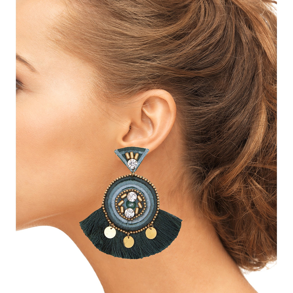 Pair these green earrings with a flowy dress for a perfect bohemian look, or wear them with a casual outfit to add an earthy twist. Ideal for date nights, festivals, or any occasion that calls for a statement piece.