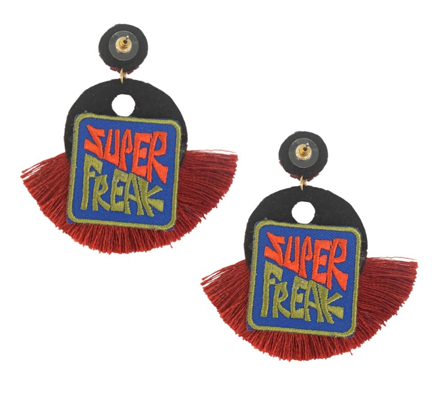 🧵 Super Freak Patch: The standout "Super Freak" patch adds a playful and unique element to these earrings, setting you apart from the crowd.