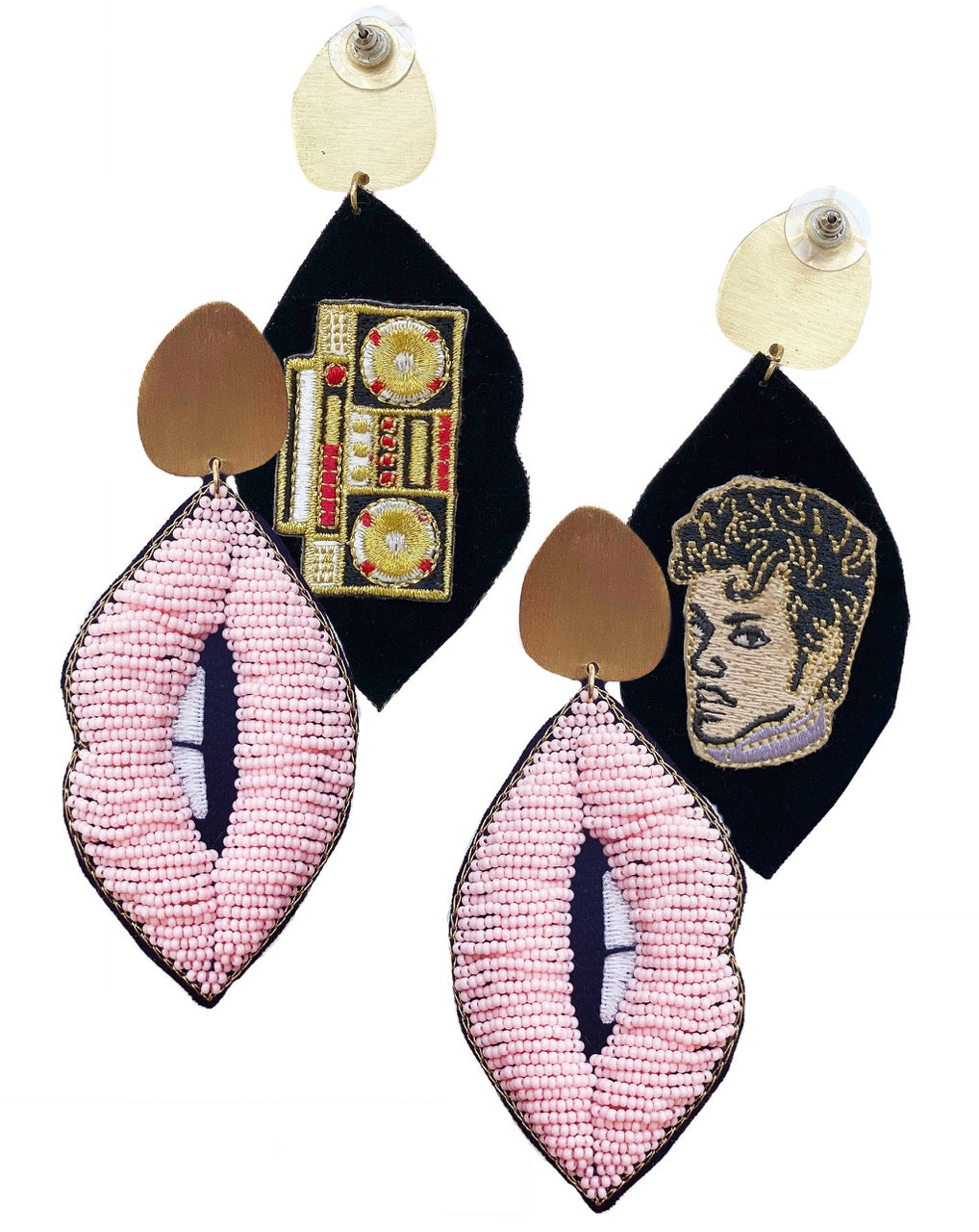 Edgy Mixed Media Details: With embroidered lips and graphic elements, these earrings are tiny wearable protest signs.