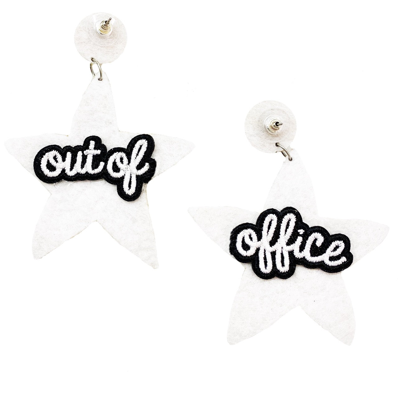 Fun & Playful Touch: The "Out of Office" patch on the back adds a playful twist, making these earrings not just a fashion statement but a conversation starter too.