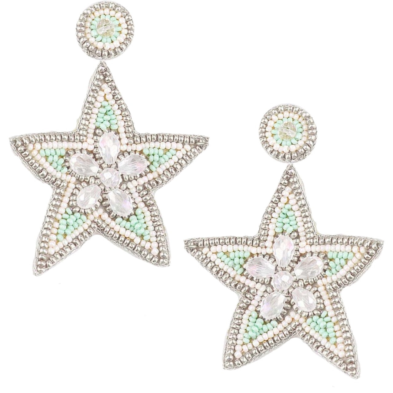 Versatile Design: The combination of mint, white, and silver beading makes these earrings versatile enough to complement a wide range of outfits.