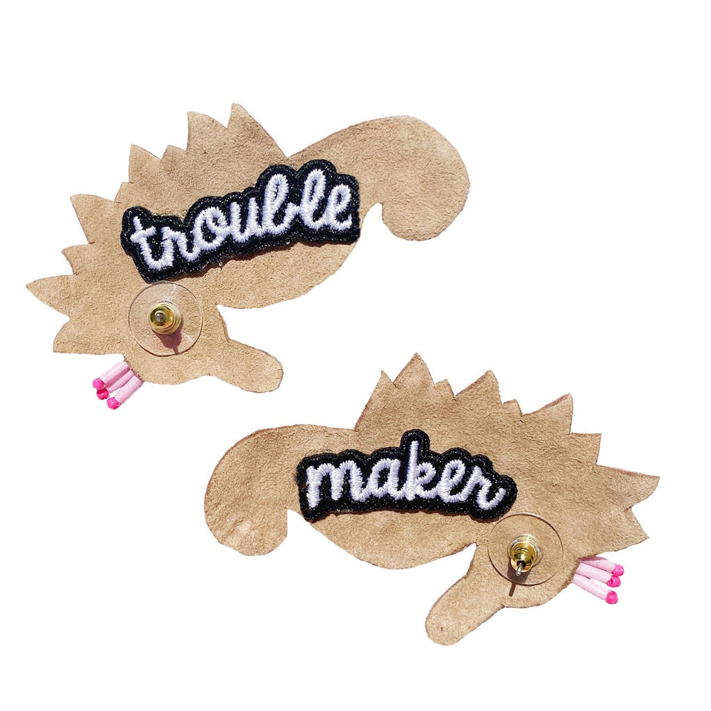 Sailors have historically found mystical strength in seahorses, often given as charms for good luck. These Rosy Seahorse Trouble Maker Earrings channel that spirit with a bold design in pink beading and "trouble maker" patches. Perfect for adding a playful nautical touch to your outfit, these earrings are handcrafted with care and ready to make waves.