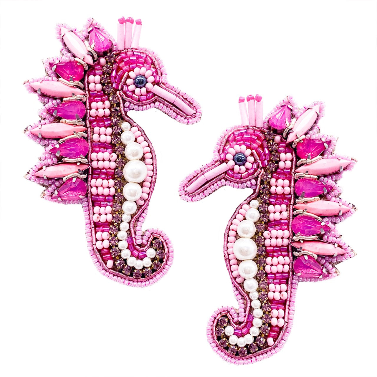 Pair the Rosy Seahorse Earrings with a simple top or dress to let these statement pieces shine. Perfect for beach days, nautical-themed parties, or just adding a playful touch to your everyday look, these earrings are sure to turn heads.